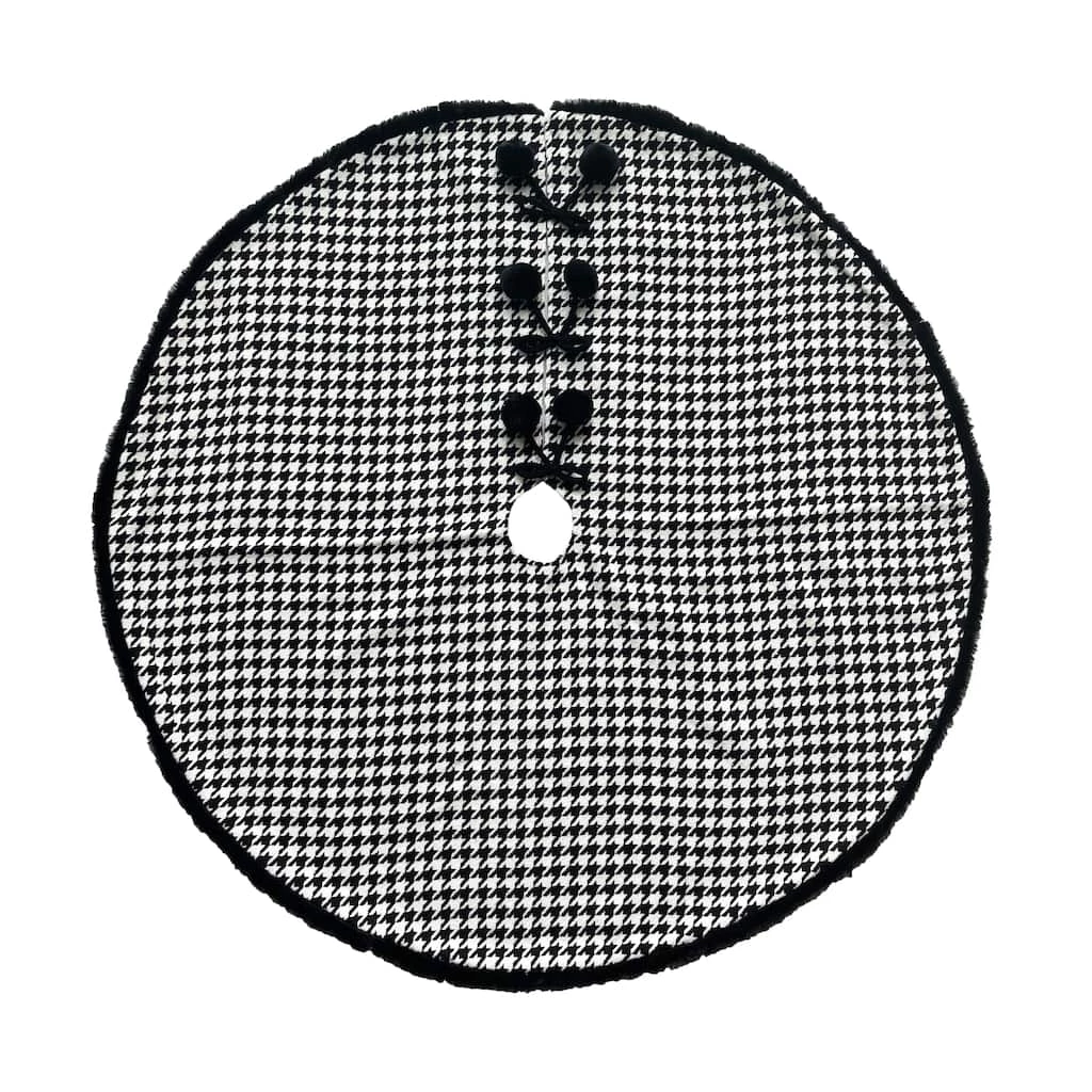 This houndstooth tree skirt with faux fur accents is guaranteed to complement your tree. Team it with ornaments and lights for the perfect holiday display.