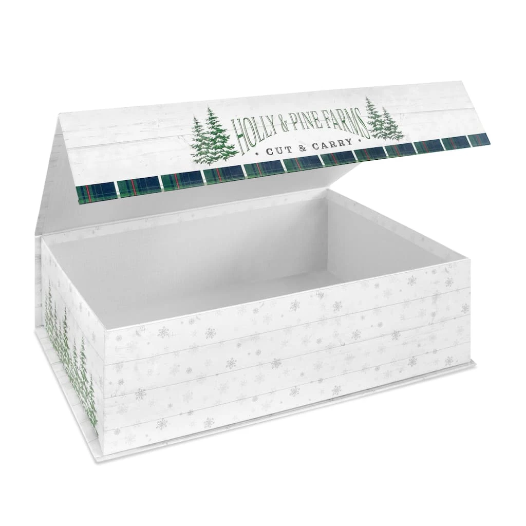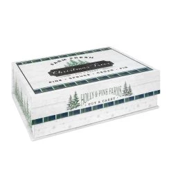 This flip top decorative box is the perfect piece for your home décor and storage. It features “Farm fresh Christmas trees” and a seasonal design with trees.