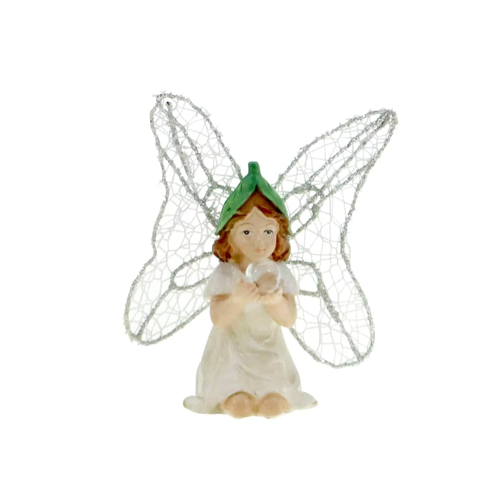 Add charm and personality to your fairy garden with this adorable miniature fairy figurine. Adorned with delicate white wings and enjoying the magic of the glistening water droplet in her hands, this sprite will feel right at home with greenery, friendly critters and another fairy or gnome for company.